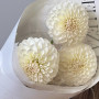 На фото букет из 3 белых георгин. В составе: георгина 3 шт, сухоцветы (микс) 2 шт, дизайнерская упаковка 1 шт, атласная лента 1 шт, . Все цветы свежие и ароматные, букет красиво оформлен и отлично подходит для подарка. Доступна доставка цветов или самовывоз.